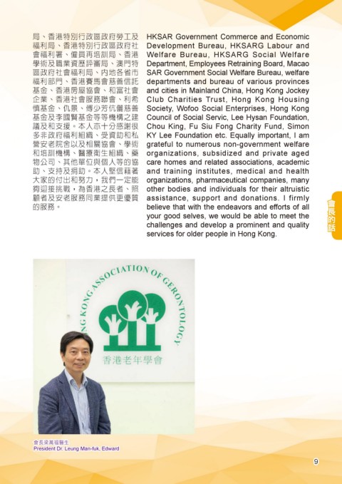 顧者及安老服務同業提供更優質 assistance, support and donations. I firmly 會長的話