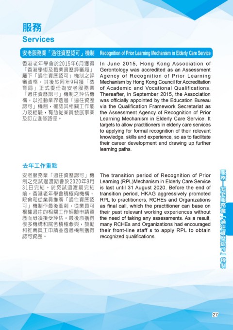 安老服務業「過往資歷認可」機 The transition period of Recognition of Prior