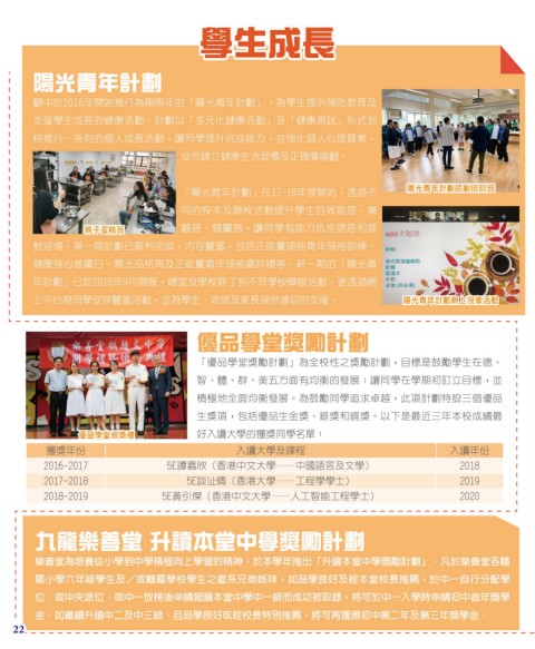 健康身心推廣日、陽光品格周及正能量青年領袖嘉許禮等。新一期的「陽光青