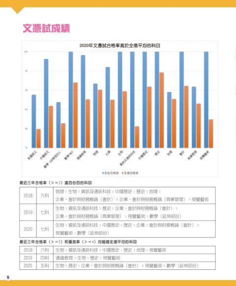 最近三年合格率(>=2)和優良率(>=4)均超越全港平均的科目