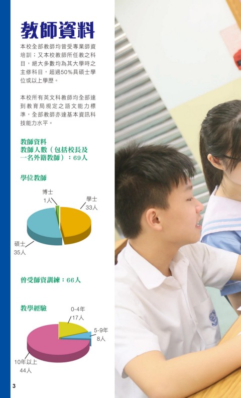 教師資料 ͉ࣧΌࢪѩಀաਖ਼ุࢪ༟ iɦ͉ࣧࢪהʘ߅ ͦdഒɽεᅰѩމՉɽኪࣛʘ ˴ࡌ߅ͦd൴ཀ50%Ո၂ɻኪ Зא˸ɪኪዝf ͉ࣧהϞߵ˖߅ࢪѩΌ༺ Ցԃ ֛҅ʘ Ⴇ˖ঐɢ ᅺ dΌࢪ͵༺ਿ͉༟ৃ߅ Ҧঐɢ˥̻f 教師資料 教師人數(包括校長及 一名外籍教師):69人 學位教師 ௹ɻ 1ɛ ኪɻ 33ɛ ၂ɻ 35ɛ 曾受師資訓練:66人 教學經驗 0-4ϋ 17ɛ 5-9ϋ 8ɛ 10ϋ˸ɪ 44ɛ 3 3