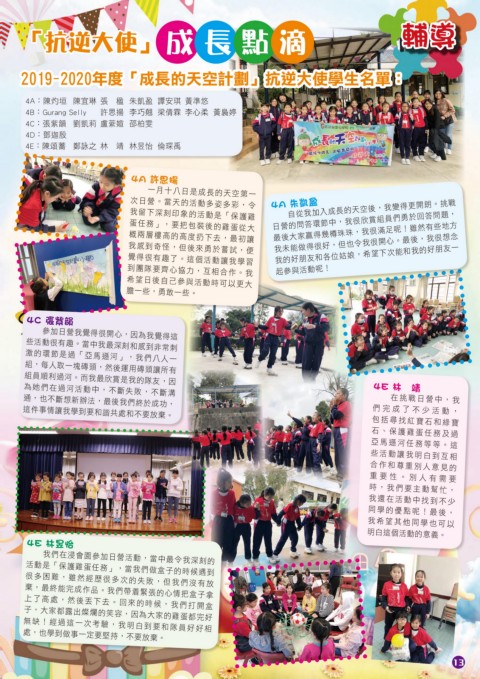 2019-2020年度「成長的天空計劃」抗逆大使學生名單: