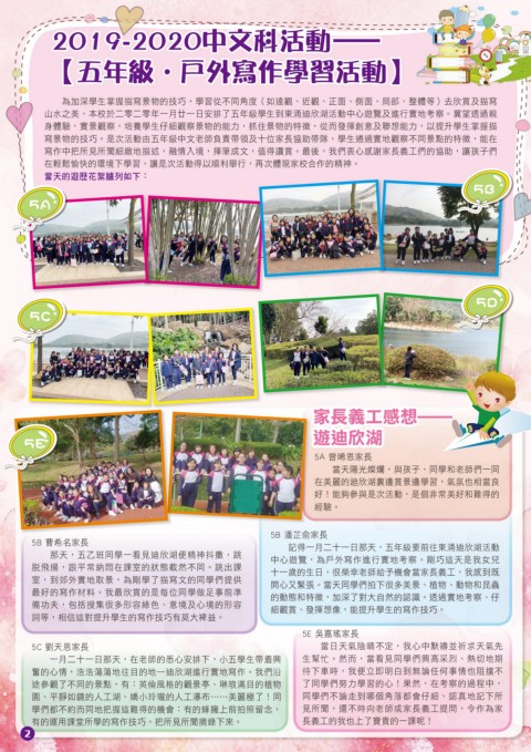寫作中把所見所聞細緻地描述,融情入境,揮筆成文,值得讚賞。最後,我們衷心感謝家長義工們的協助,讓孩子們