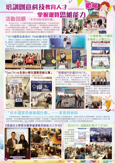 編程課程,本年將運算思維的概念推展至家長層面,特別舉辦了《透過自主學習培養學童運算思維能力工作坊》及《SCRATCH遊戲設計親子工作坊》讓