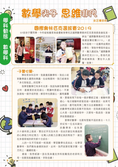 6A班徐子豐同學,今年破格獲香港資優教育學苑及國際數學奧林匹克香港委員會批准,