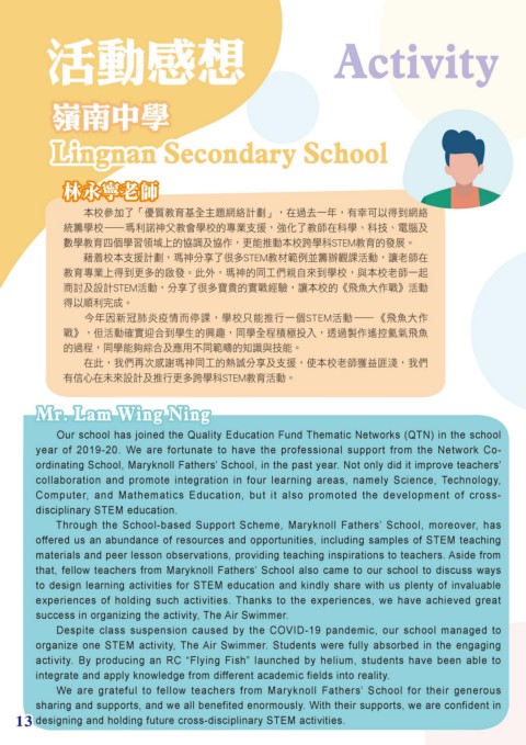 今年因新冠肺炎疫情而停課,學校只能推行一個STEM活動—《飛魚大作