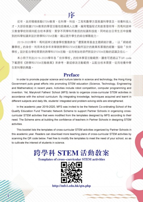 本小冊子列出2019-2020學年各「伙伴學校」的校本學習活動範例。讀者可透過以下QR code