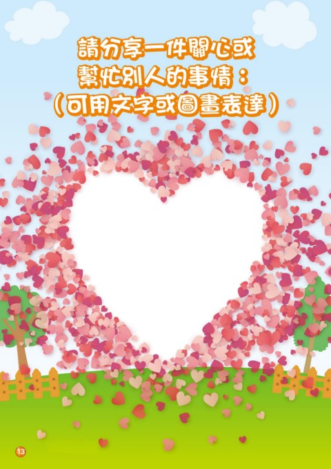 請分享一件關心或 幫忙別人的事情: (可用文字或圖畫表達) 13