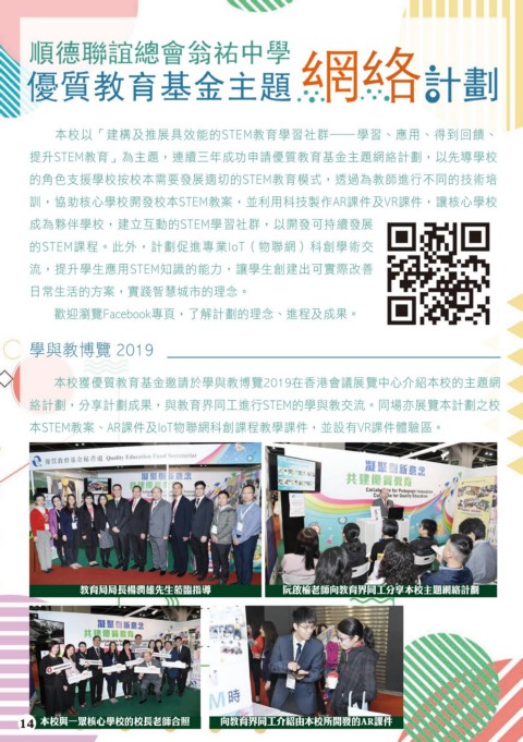 本校獲優質教育基金邀請於學與教博覽2019在香港會議展覽中心介紹本校的主題網