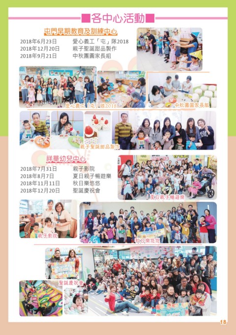 ▓各中心活動▓ 屯門早期教育及訓練中心 2018ϋ6˜23˚ ฌː່ʈˊඟ2018 2018ϋ12˜20˚ ፋɿ໋ሖۜႡЪ 2018ϋ9˜21˚ ʕ߇ྠڗଡ଼ 愛心義工「屯」隊2018 中秋團圓家長組 親子聖誕甜品製作 祥華幼兒中心 2018ϋ7˜31˚ ፋɿᅂ৫ 2018ϋ8˜7˚ ࢀ˚ፋɿ༷ᆀ 2018ϋ11˜11˚ ߇˚ᆀઅઅ 2018ϋ12˜20˚ ໋ሖᅅज़ึ 夏日親子暢遊樂 親子影院 秋日樂悠悠 聖誕慶祝會 18