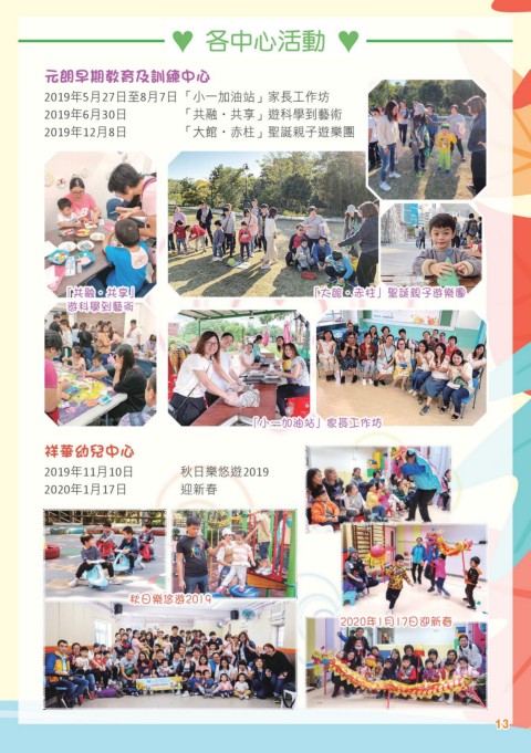 ♥ 各中心活動 ♥ 元朗早期教育及訓練中心 2019ϋ5˜27˚Ї8˜7˚ ʃɓ̋ذ१ڗʈЪѥ 2019ϋ6˜30˚ ፄhԮ༷߅ኪՑᖵஔ 2019ϋ12˜8˚ ɽhԏݒ໋ሖፋɿ༷ᆀྠ 「共融.共享」 「大館.赤柱」聖誕親子遊樂團 遊科學到藝術 「小一加油站」家長工作坊 祥華幼兒中心 2019ϋ11˜10˚ ߇˚ᆀઅ༷2019 2020ϋ1˜17˚ ڎอ݆ 秋日樂悠遊2019 2020年1月17日迎新春 13