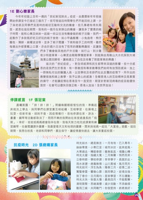 抗疫時光 2D 張緻晴家長 時光如水,總是無言;一月匆匆,已入寒冬。