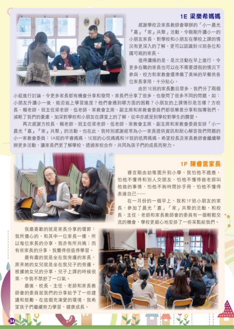 晨光『嘉』『家』共聚」的活動。也在此,我特別感謝經常為小一家長提供資訊和耐心解答我們問題的