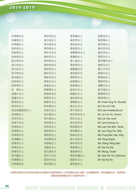 46                NEW TERRITORIES WOMEN & JUVENILES WELFARE ASSOCIATION LIMITED