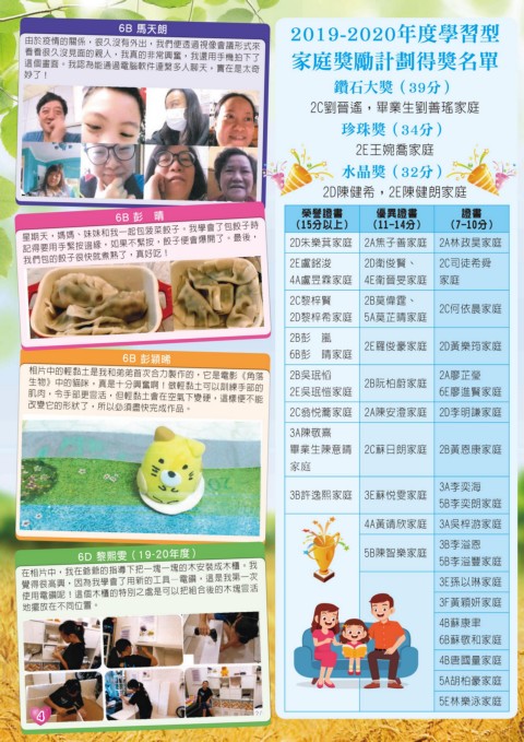 6D 黎熙雯(19-20年度) 5B陳智樂家庭 5B李溢豐家庭