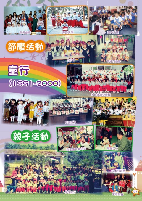 聖景劇場 舞獅表演 龍舟比賽 節慶活動 生日會 中秋花燈會 主伴 童行 四十年 (1991-2000) 冬日繽紛亞斯理 聖誕匯演 親子活動 敬愛護老嘉年華 環保手工 秋季郊遊樂 學校旅行 21 聖誕聚餐