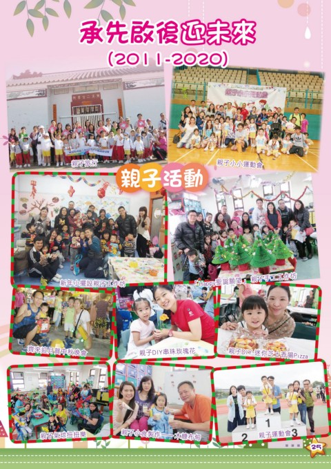 承先啟後迎未來 (2011-2020) 親子旅行 親子小小運動會 親子活動 「Happy聖誕願望」 親子手工工作坊 新年小擺設親子工作坊 親子DIY串珠玫瑰花 親子DIY~迷你芝士香腸Pizza 齊來迎月賀中秋晚會 親子氣球扭扭樂 親子小食製作—木糠布甸 親子運動會 25