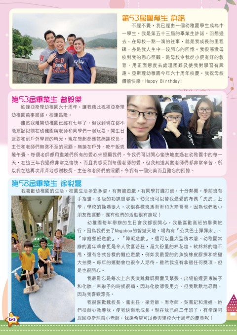 64 以回亞斯理當小老師,我還希望可以參與學校六十周年的慶典呢!