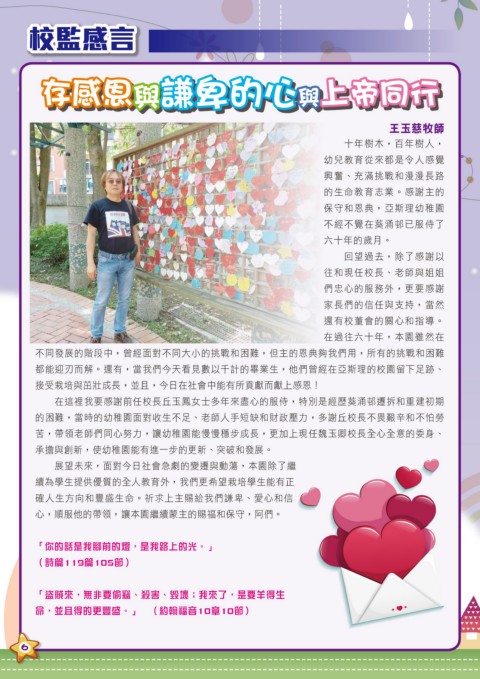 苦,帶領老師們同心努力,讓幼稚園能慢慢穩步成長,更加上現任魏玉卿校長全心全意的委身、