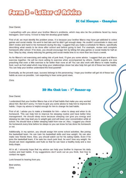 All in all, I sincerely hope that my advice can help your brother to improve his daily