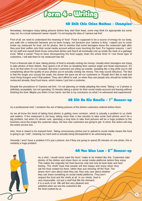 inside my restaurant for food, not for photos. Not to mention that some teenagers leave the restaurant right after