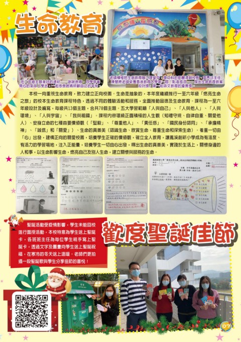 之旅」的校本生命教育課程特色,透過不同的體驗活動和服務,全面推動品德及生命教育。課程為一至六