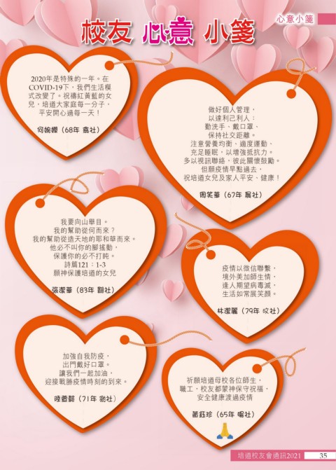 迎接戰勝疫情時刻的到來。 祈願培道母校各位師生,