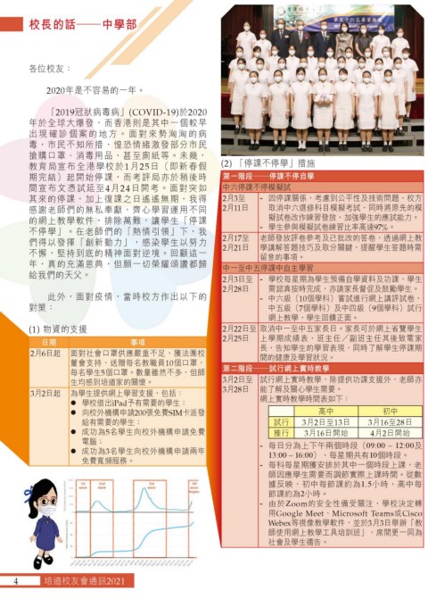 2月6日起 面對社會口罩供應嚴重不足,獲法團校 長,告知學生的學習表現,同時了解學生停課期