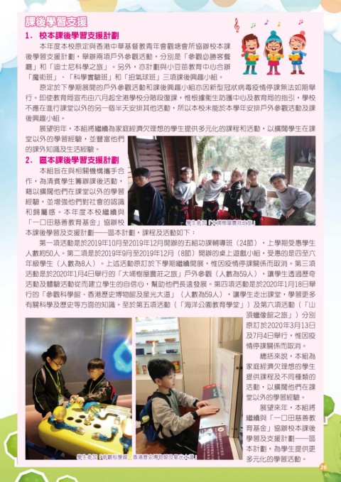 原定於下學期展開的戶外參觀活動和課後興趣小組亦因新型冠狀病毒疫情停課無法如期舉