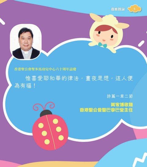 嘉賓賀詞 5 ࠰ಥ໋ʮึ໋ε৵̼ՅʕːʬɤմϋႦᅅ 惟喜愛耶和華的律法,晝夜思想,這人便 為有福! 詩篇一章二節 黃家博敬題 香港聖公會聖巴拿巴堂主任