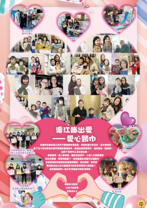 募了五十多位家長於普天同慶的聖誕節中,編織出過百條頸巾,並把這些「溫暖牌」