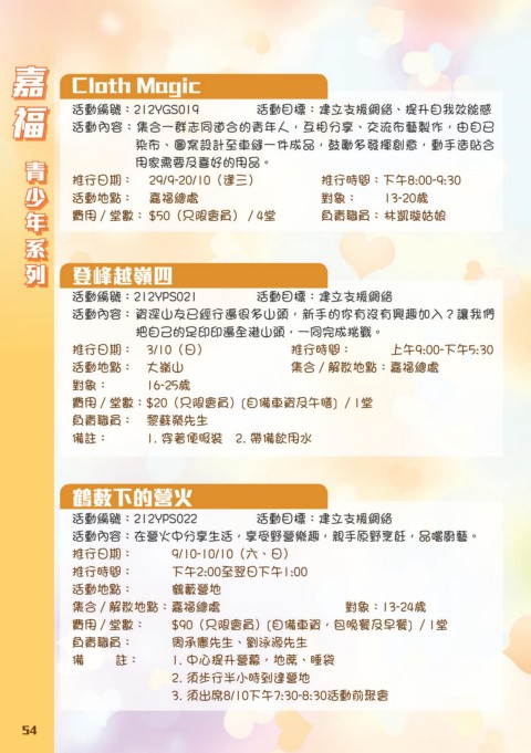 集合∕解散地點:嘉福總處 對象:13-24歲