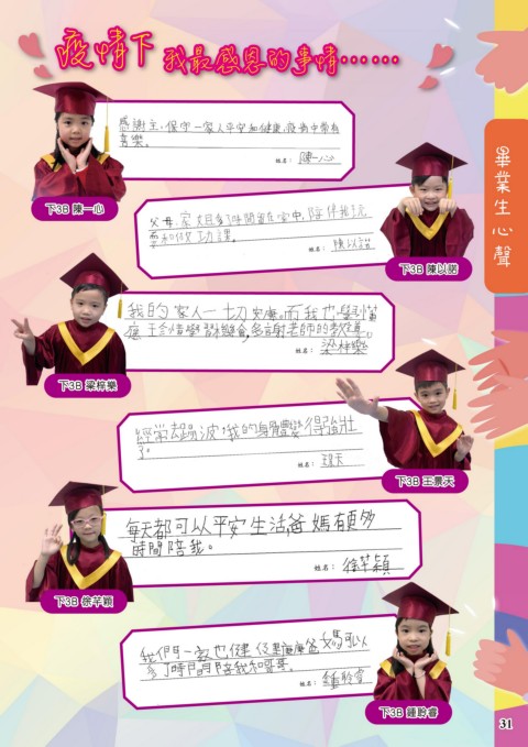 疫情下 我最感恩的事情…… 疫情下 我最感恩的事情…… 畢業生心聲 下3B 陳一心 下3B 陳一心 下3B 陳以諾 下3B 陳以諾 下3B 梁梓樂 下3B 梁梓樂 下3B 王景天 下3B 王景天 下3B 徐芊穎 下3B 徐芊穎 下3B 鍾聆睿 下3B 鍾聆睿 31 31