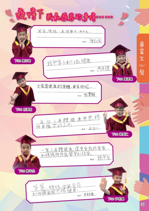 疫情下 我最感恩的事情…… 疫情下 我最感恩的事情…… 畢業生心聲 下3B 陳子瑜 下3B 陳子瑜 下3B 馮浠瞳 下3B 馮浠瞳 下3B 何澤朗 下3B 何澤朗 下3B 梁智仁 下3B 梁智仁 下3B 施芊允 下3B 施芊允 下3B 尹柏喬 下3B 尹柏喬 33 33