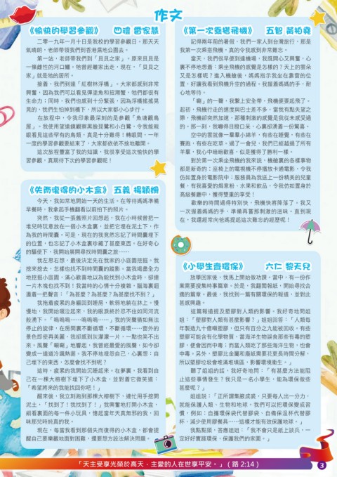 《愉快的學習參觀》 四禮 雷家慧 《第一次乘搭飛機》 五智 黃柏堯