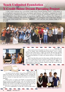 7 CNC senior students have joined the Credit Suisse Dream Pursing Project. Credit Suisse is