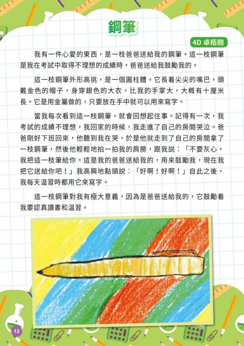 一枝鋼筆,然後他輕輕地拍一拍我的肩膀,跟我説︰「不要灰心,