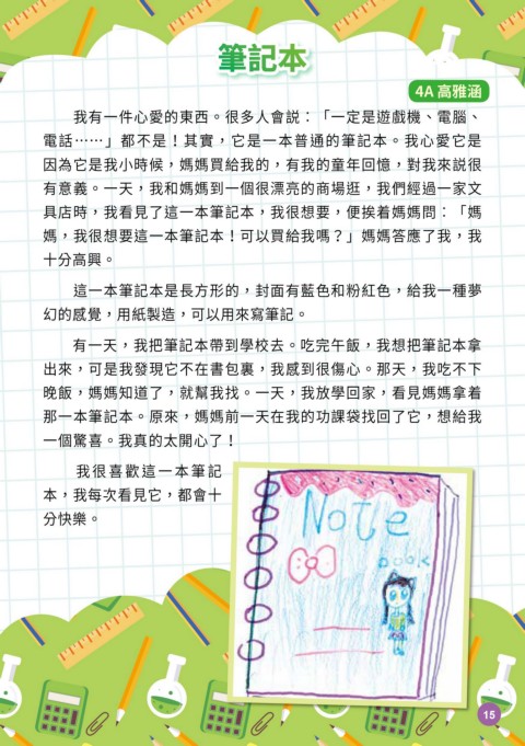 那一本筆記本。原來,媽媽前一天在我的功課袋找回了它,想給我