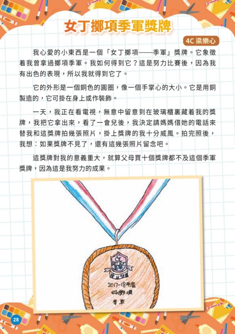 這獎牌對我的意義重大,就算父母買十個獎牌都不及這個季軍