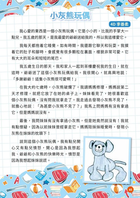 在我大約七歲時,小灰熊破爛了,我請媽媽修理,媽媽説第二