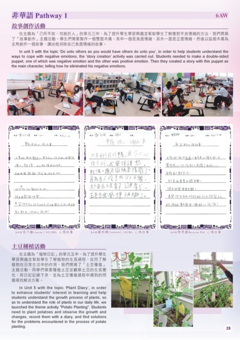 In Unit 5 with the topic ‘Plant Diary’, in order