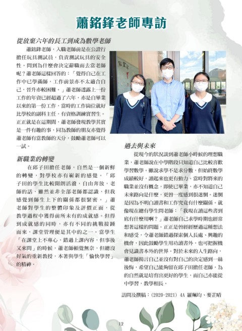 訪問及撰稿:(2020-2021) 4A 羅珮均、麥芷晴
