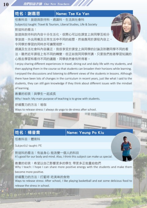 任教科目:旅遊與款待科、通識科、生活與社會科