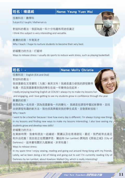 我很喜歡在文理書院(九龍)教英文科!我總是盡力使我的課程變得