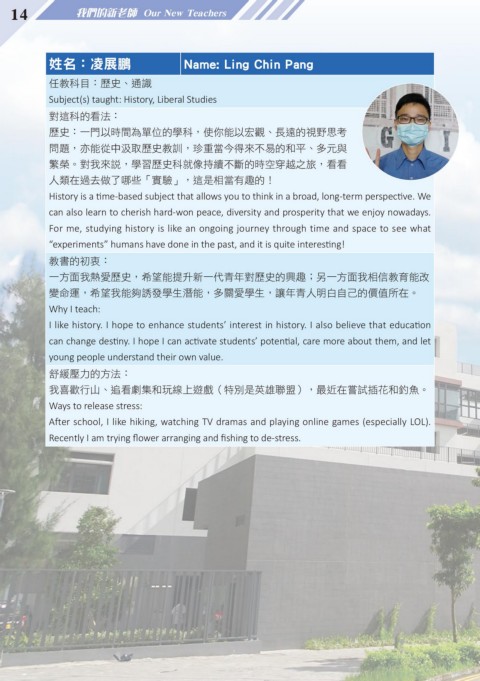 I like history. I hope to enhance students’ interest in history. I also believe that education