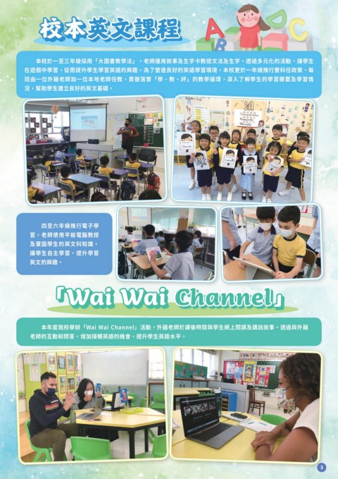 本年度我校舉辦「Wai Wai Channel」活動,外籍老師於課後時間與學生網上閱讀及講說故事。透過與外籍