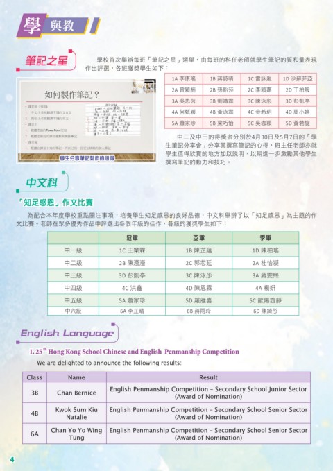 1. 25  Hong Kong School Chinese and English  Penmanship Competition