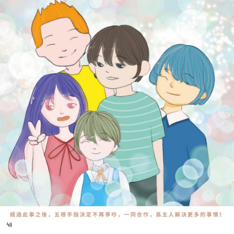 著 繪 : : 風 油 精 味 的 「 球 球 」 蔡 王 巧 靖 經 過 此 事 之 後 , 五 根 ⼿ 指 決 定 不 再 爭 吵 , ⼀ 同 合 作 , 爲 主 ⼈ 解 決 更 多 的 事 情 ! 48 烽 滢 49