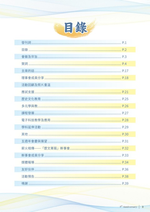五週年會慶與展望.......................................................................... P.31
