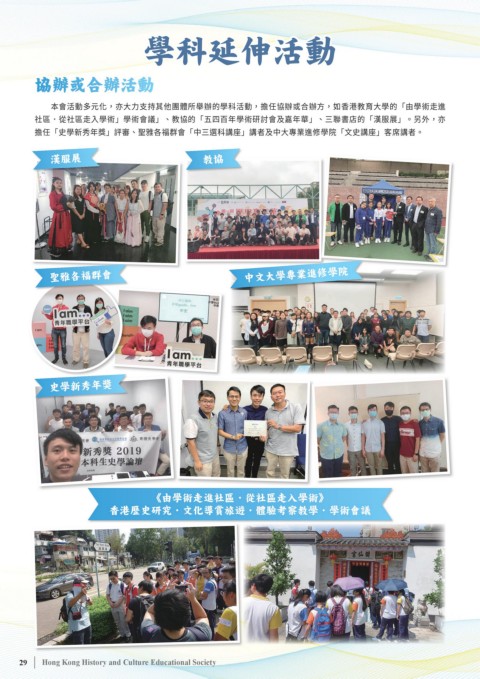 社區.從社區走入學術」學術會議」、教協的「五四百年學術研討會及嘉年華」、三聯書店的「漢服展」。另外,亦